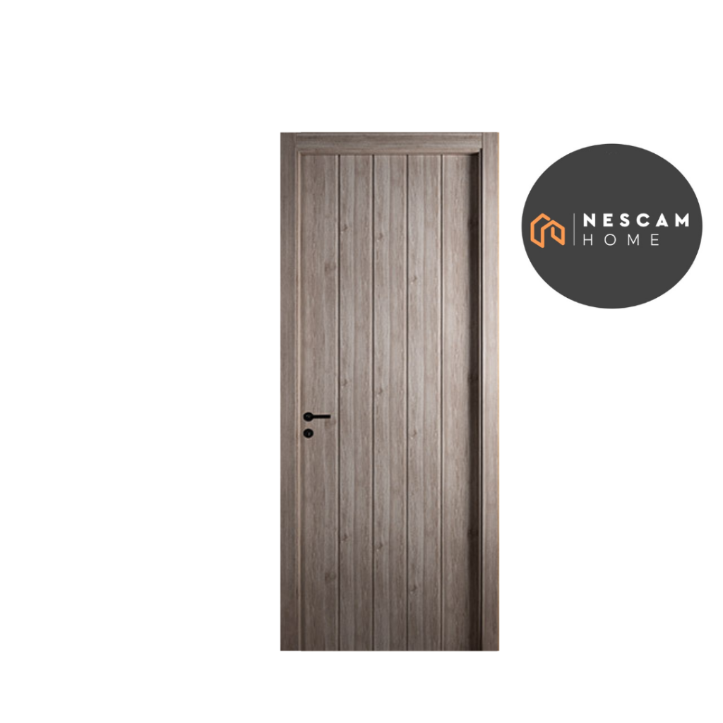 Caras con listones anchos de MDF de 12 mm, foliada con papel melamínico en color blanco. Cerradura Kallay 4006. Burlete perimetral. Tratamiento en la parte inferior de la hoja. Puerta de abrir en: 2,00 m, 2,20 m y 2,40 m.